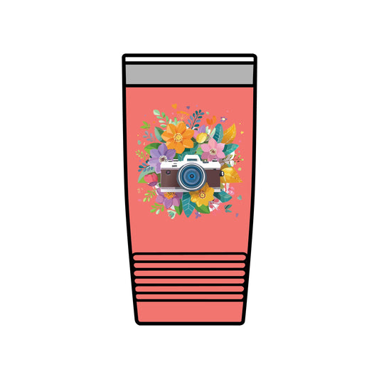 Floral Camera Insulated Tumbler - 20oz Travel Mug for Photography Lovers